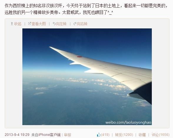罗永浩称一共去过日本三次,他在2013年9月曾发微博:太君威武,我死也瞑目了……