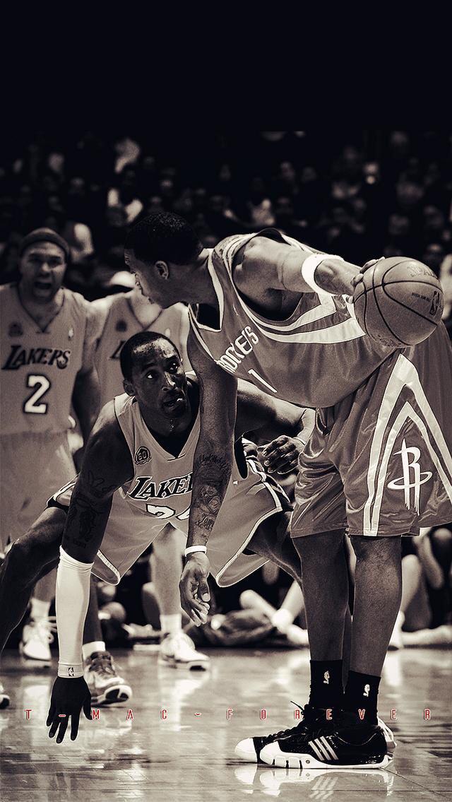07-08赛季揭幕战,因夏天离队传言面对主场球迷的嘘声,科比砍下45分,麦迪30分。最后时刻,麦迪招牌式单手抓球,科比单手撑地防守。