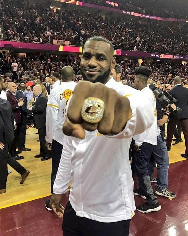 第三张,詹姆斯领骑士总冠军戒指开心的微笑