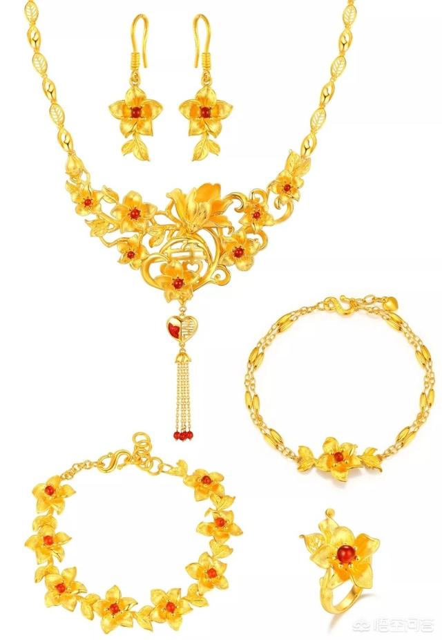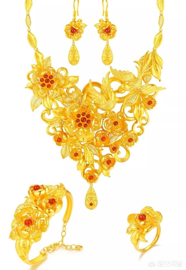 高预算的黄金首饰套装,一般包括50克左右黄金手镯,20克左右的黄金吊坠,选择最流行的古法黄金为主;6到10克项链,5克左右的黄金戒指,和3克左右的黄金耳钉,这样一套算下来80克左右,总价两万五左右就可以。