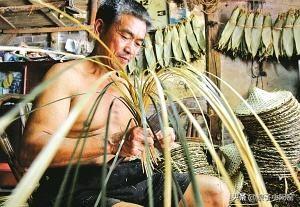 4、完成笠胎后以具完整的斗笠雏型,之后必须以桂竹叶一片一片覆盖,成为“吸笠”。