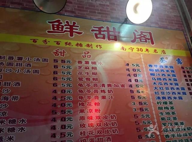 网友:Ltemme说,鲜甜阁!中山路尽头再往江北大道走一点。不好意思,本人支持廉价美食!香甜的糖水店,充满嚼劲的小汤圆你值得尝试!别小看这里,这里可是2008年南宁市民最喜爱传统小吃,2012年模范经营户!亲,不会后悔的尝试哦~!