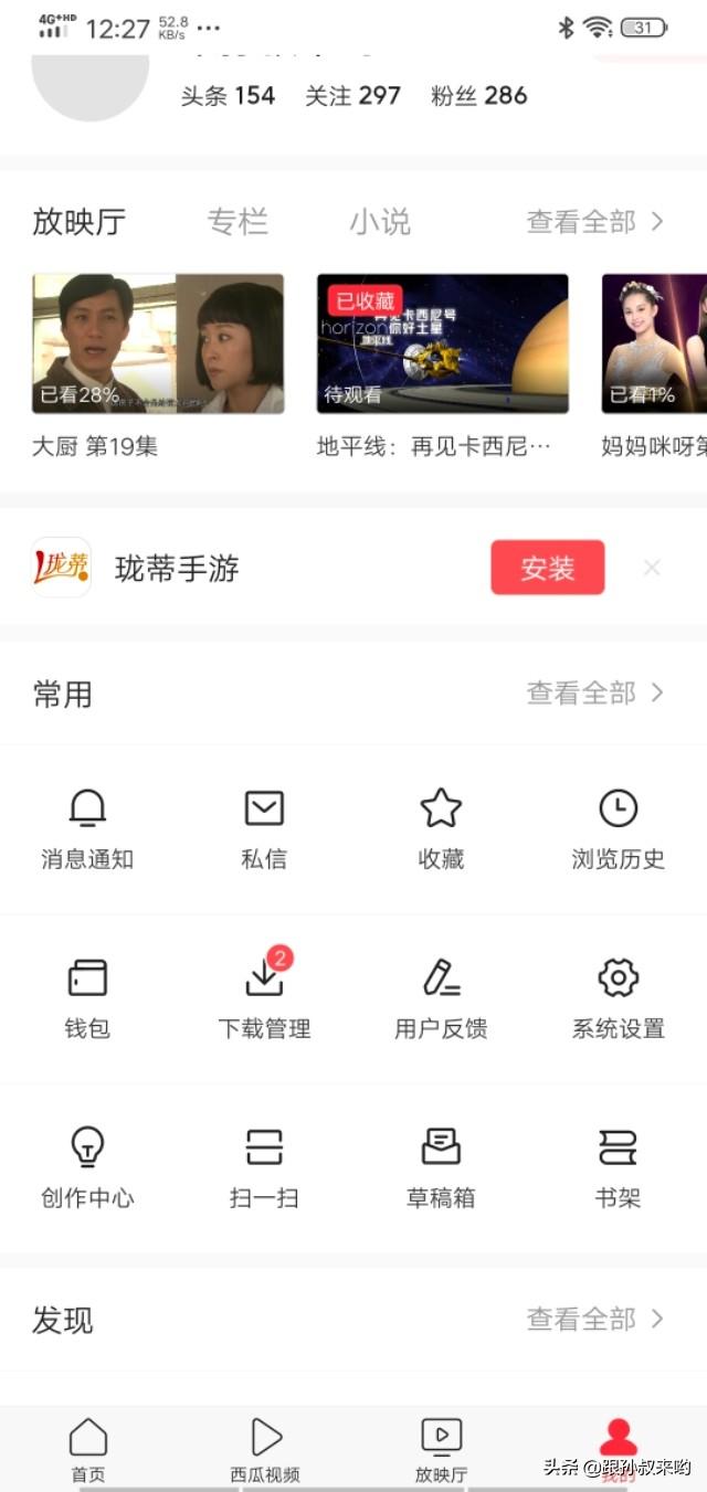 在头顶选项卡找到头条内测