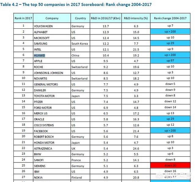 把眼光放到全球来看,同时也应该看到中国公司特别是大公司研发投入的不足。在2017年全球企业研发投入排行榜顶尖50名中,仅仅只有华为一家入列,虽位置排位为全球第六,但难掩中国公司在研发投入上的失色。仅仅靠华为一家熠熠星光不能撑起一片的繁华,期望有更多的公司能够入列这样的榜单。