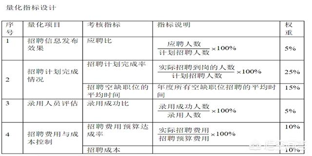 包括:发布信息效果、招聘疾患完成情况、录用人员评估和成本控制等方面都有严格的考核指标。