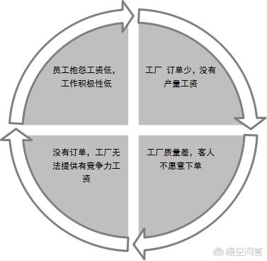 通过这张图我们可以向后看到很多平时不注意的恶性循环,我们站在员工工资低的角度来解决问题,那就是说提高工人工资,但是如果我们深入的去了解造成这种现象的原因,那就会发现提高公司产品的质量才是解决这个恶性循环的苦口良药。