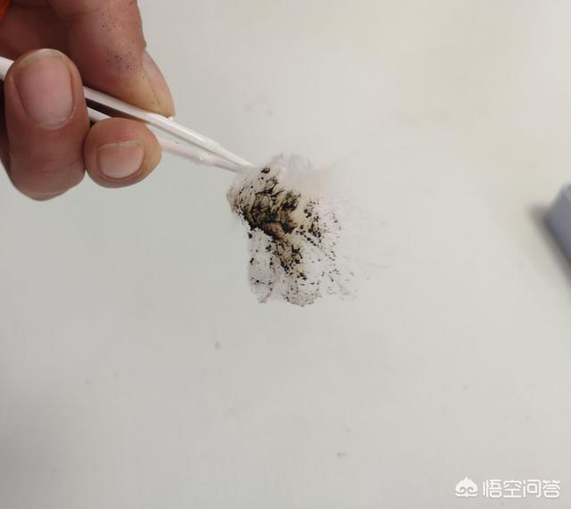 3,桑蚕丝燃烧以后手一碾,成灰。不会变成硬块。(以图为证)