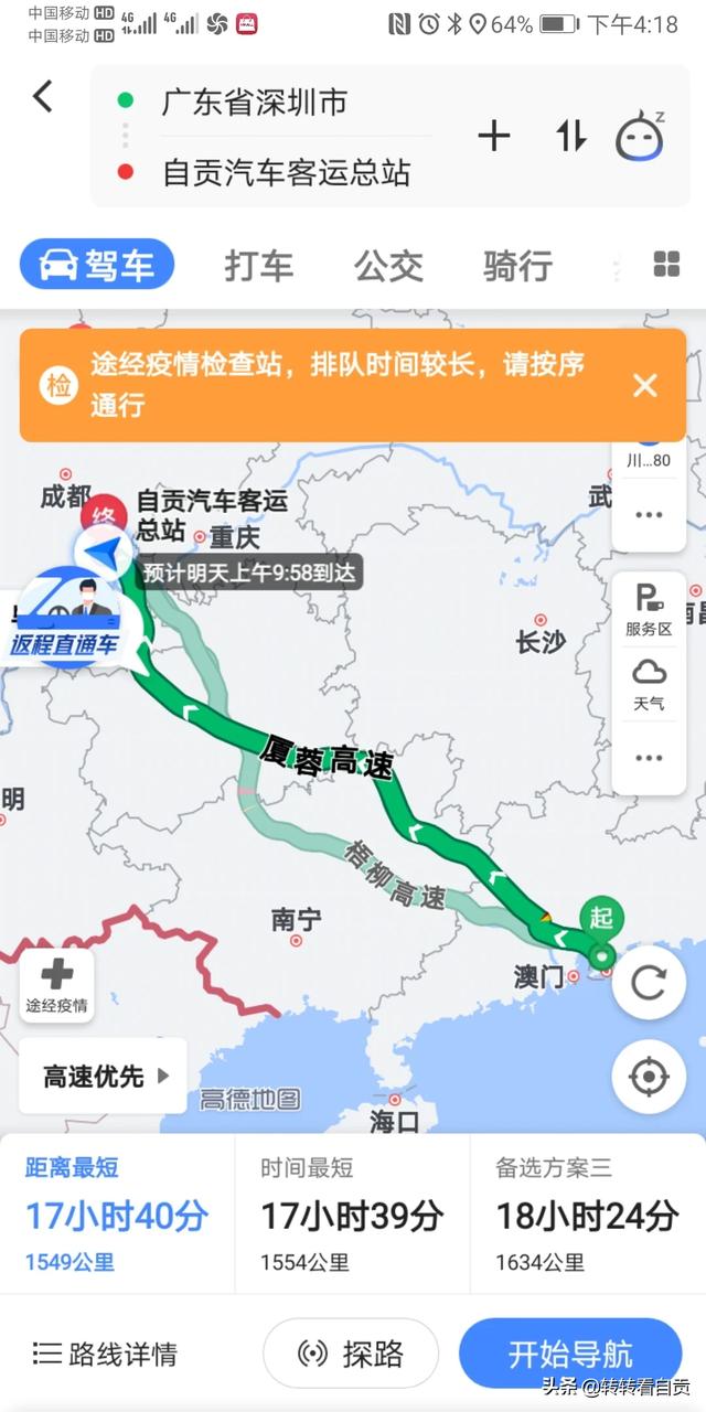 深圳返四川自贡哪条路最快? 新农商网 更新于 2023-08-10 09:49:59 全部 1013 深圳返四川自贡哪条路最快? 回复 共1条回复 我来回复 德才兼备熊猫VO 这个人很懒,什么都没有留下~ 评论 开车直接高德导航17个小时即可坐飞机到泸州市云龙机场,再转客车到自贡就行 赞同 2020-02-21 16:20:13 0条评论 请 登录 或者 注册 后回复。