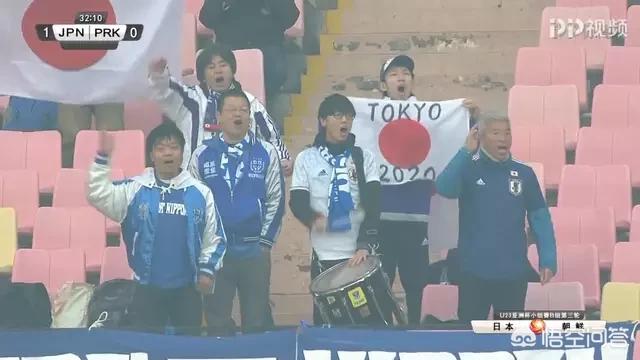 日本队对朝鲜队,偌大的球场看台,只有几个举着太阳旗的日本球迷在看球。
