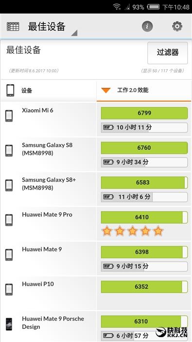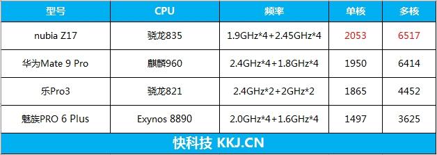 从排行榜来看,nubia Z17介于三星Galaxy S8+与华为Mate 9 Pro之间,位于排行榜的前列。