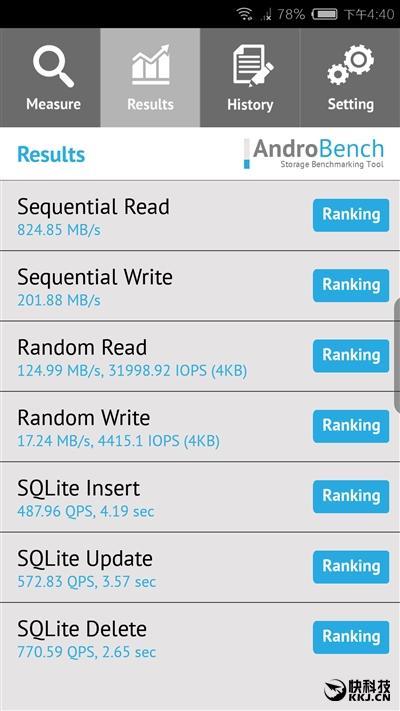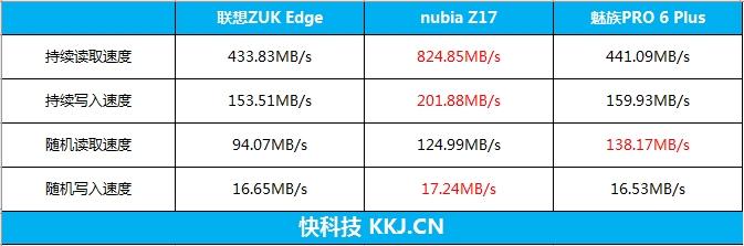 ↑↑↑AndroBench 5存储性能测试:nubia Z17全系标配UFS 2.1,持续读取和写入速度远超对手。