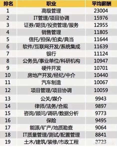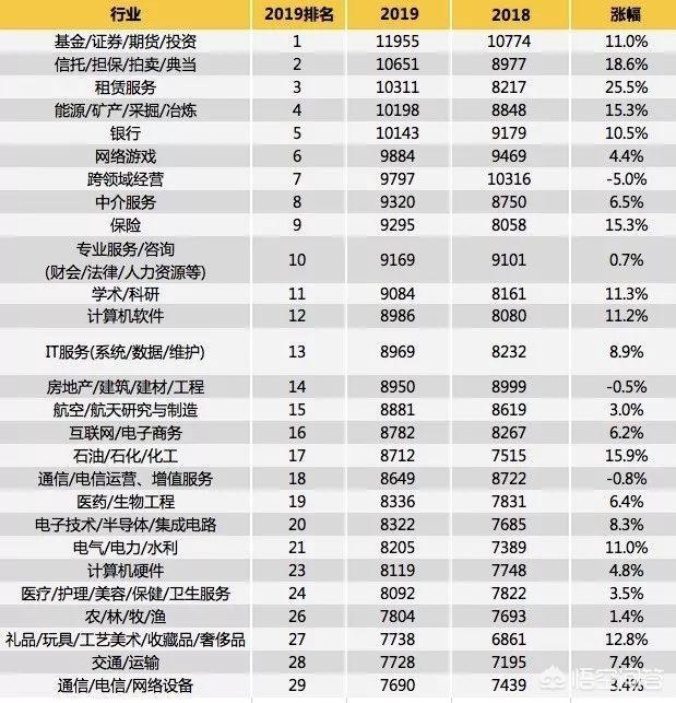 看看深圳2019年春招的行业薪酬排行,一般情况下在基金、证券公司做人力资源、财务、行政等各种岗位一般都会比其他行业高一些。