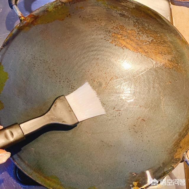 3、 锅烧热,倒入少许的油,用厨纸把油抹匀锅底。