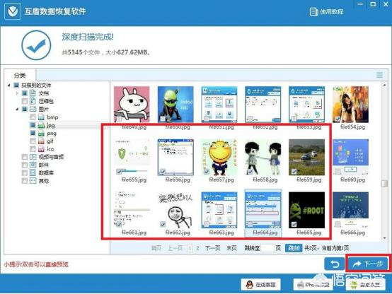 第四步:扫描工作结束之后,在界面左侧找到误删文件对应的格式点击,右侧就显示有具体的文件信息了,在其中找到需要恢复的文件勾选上,之后点击【下一步】按钮。