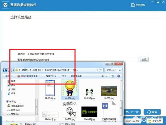 第五步:点击【浏览】按钮选择恢复后文件所需的存储位置后,点击【恢复】按钮进行U盘文件删除后恢复的最后工作,恢复完成后点击提示框的【确定】按钮,之后就可以查看到恢复完成的文件了。