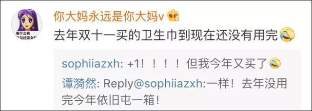 再来看看其他人,恩,囤的姨妈巾,没开封就怀孕了,恭喜恭喜……