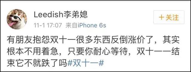 甚至有网友调侃,等双十一结束就跌回去了。