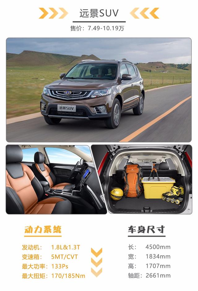 动力表现不是远景SUV的强项,但是完全能够胜任家庭用车。内饰的做工用料属同级上乘,各部件之间没有明显的缝隙,整车对噪音的控制也比较到位,不错的驾乘感受加上价格优势,符合大部分消费者的用车需求。