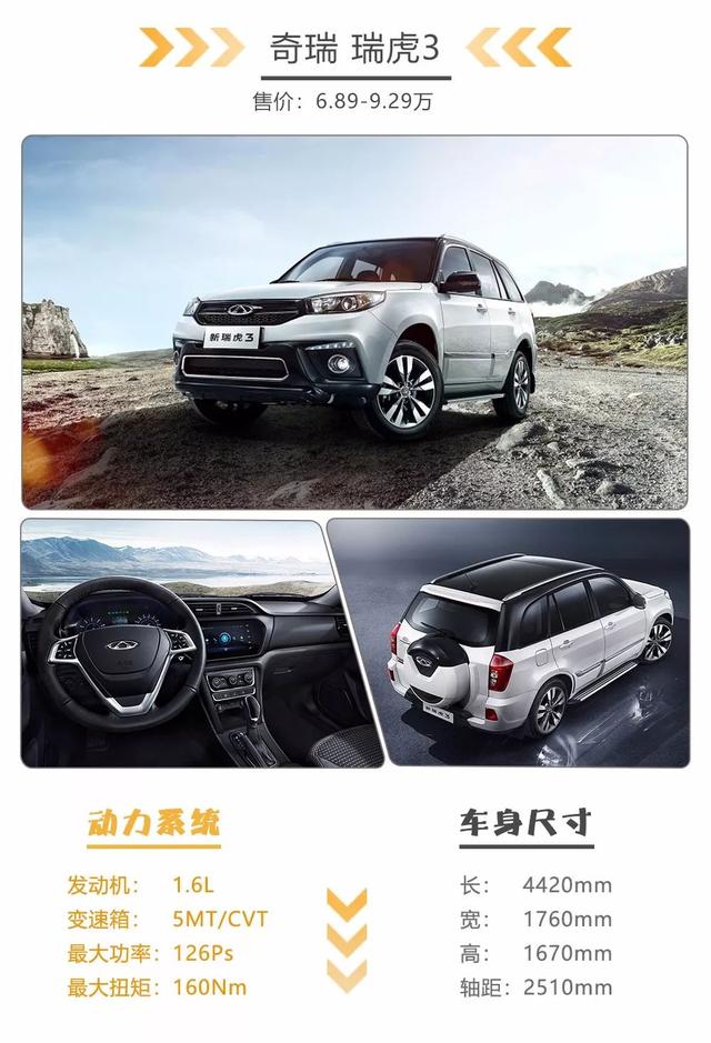 瑞虎3是SUV市场中的一位老前辈了,征战市场多年的它经过多次改款变得更加年轻时尚,各项配置也均有所提升,仍然保持着相当不错的竞争力。新款的瑞虎3在外观上有着些许的硬朗风格,新增的宝石蓝配色也更加讨年轻人喜欢,内饰上没有太多亮点但是各项配置都很实用,安全配备也十分厚道。