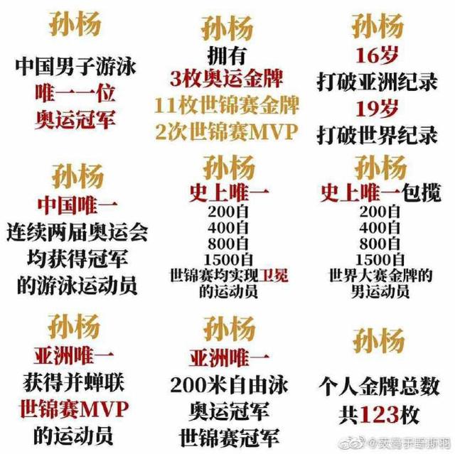 3、孙杨是规则的破坏者,出道至今负面消息不断,无证驾驶、师徒不和、赌气似的攻击对手you looser I'm winner、直到用锤子砸碎检测瓶、法庭公然要求更换翻译以及其妈宝男的形象行为,这都是在挑战公众的认知,获得金牌不一定意味着一切,不意味着可以凌驾于规则之上,孙杨的种种做法显示出家庭教育或者公共教育的缺失,他本可以是中国媲美姚明刘翔级别的的运动员,本该以更为正面形象出现在公众面前,搞得现在黯然收场,可怜可恨!