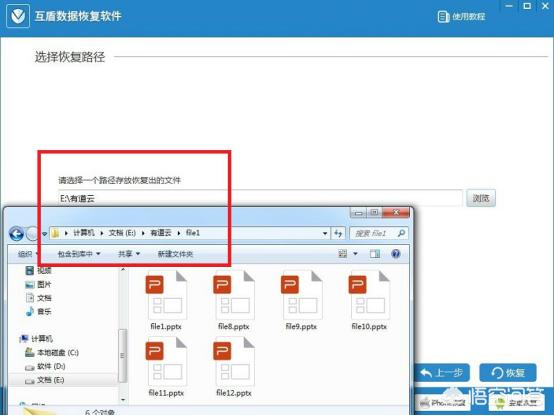 步骤五:点击【浏览】按钮选择恢复后文件所需的存储位置后,点击右下角的【恢复】按钮来进行回收站删除文件的最后恢复工作了,恢复完成后出现提示框,点击【确定】按钮即可查看到恢复后的文件了。