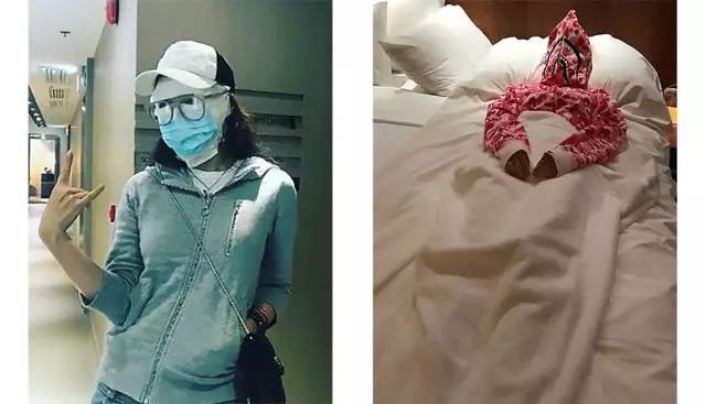 哈哈哈她不是因为过敏吗 把自己包起来就不会让皮肤接触到过敏原了 这是非常无奈的办法 她就是开个玩笑 她还说她不洗澡呢哈哈哈