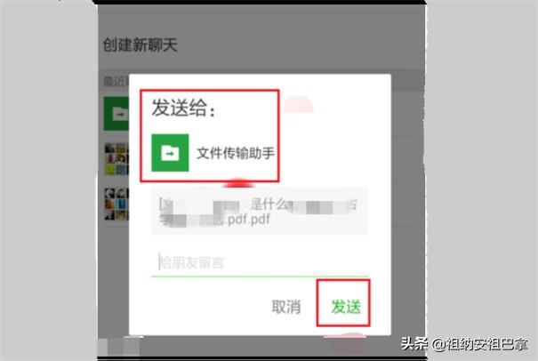 3、选择文件传输助手后,会确认发送对象,检查无误后点击发送。