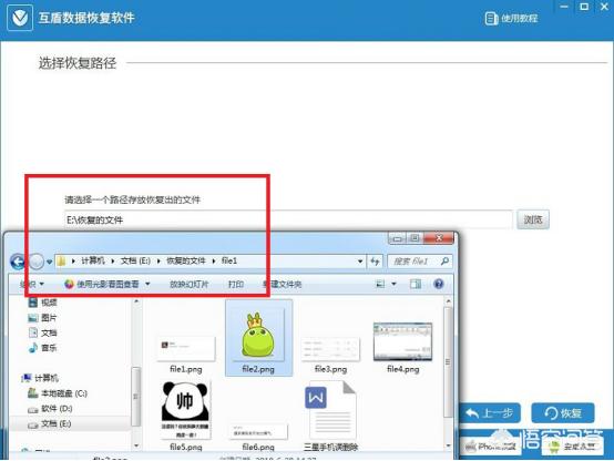 第五步:点击【浏览】按钮选择恢复后文件所需的存储位置后,点击【恢复】按钮进行U盘删除文件的最后恢复工作了,恢复完成后可前往查看文件以及备份等。