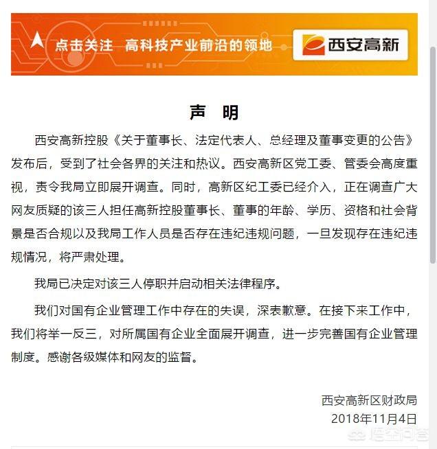 据悉,由于该公司人事变动受到广大网友关注置疑,西安高新区纪工委已介入调查。以下是纪工委声明: