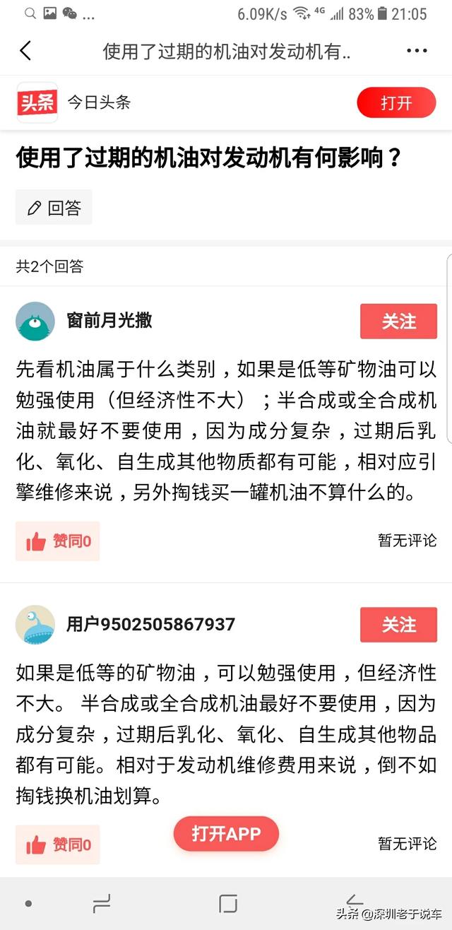 总结:发动机机油的真实保质期没有具体标准,如果在避光环境中贮存至少能放个十几年。除非在存放过程中密封口漏气才能可能缩短几年的时间,所以在选择机油时大可以看一看这些接近保质期的低价油,对于发动机而言实际没有什么不同;要知道很多军粮罐头保质期都会有几十年,何况这些加入了各种添加剂的机油。