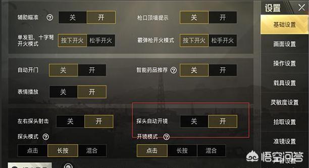 还有一个建议就是,在游戏设置中,把探头自动开镜这个选项打开,能一气呵成的做到侧身加开镜,可以更快的锁定敌人,减少先侧身再开镜的时间。最后码字不易欢迎各位认同我观点的老铁点波关注谢谢。