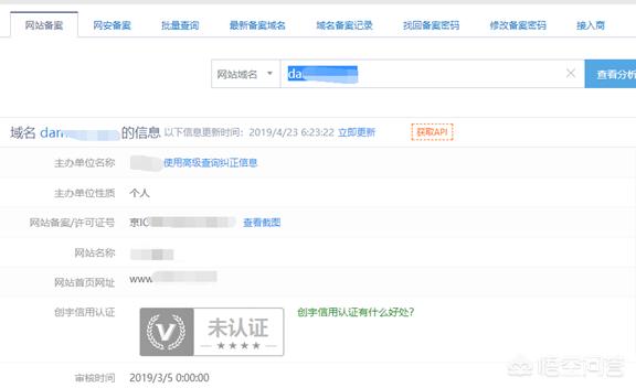 域名查询方式为输入想要查询的域名信息即可。如:我自己的网站信息;备案编号查询就输入已知的备案编号即可、主办单位也是一样的查询方式