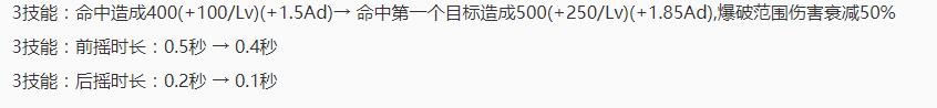 二技能增加20%的物理穿透效果,持续4秒!这个改动实在是太变态了,配合破甲弓的护甲减免,这个护甲减免可以达到惊人的65%。