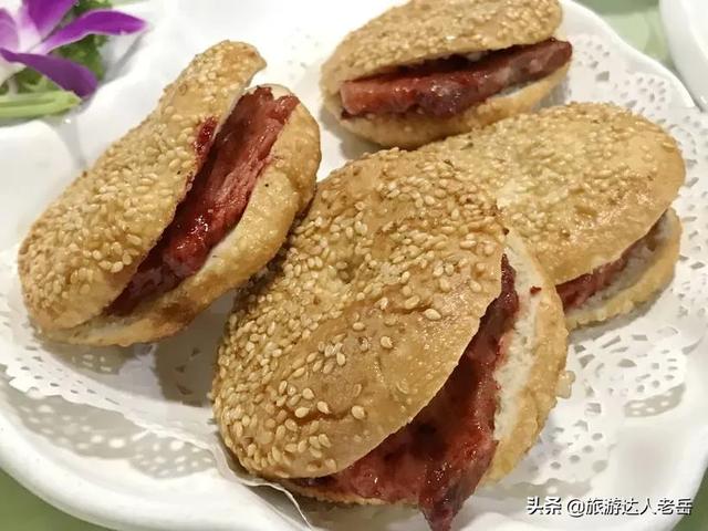 对夹源于一种“杈子烧饼”,其用一定比例的油水和面,外用小米面或糜子面擦稣,并涂以酥油,食前火烤片刻既成,内夹熏肉,外焦里嫩,味道极美。每一个离开家乡的人,每次从外地回来大概都要先去对夹铺尝尝这久违的“乡味”吧,反正小编就会~