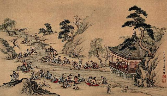 之后的上巳节在人们的广泛流传下又添加了曲水流觞、踏青等节目。举世闻名的“天下第一行书”《兰亭集序》就是王羲之在这一天邀请亲朋好友、高政军官等12位文人雅士在兰亭清溪两旁举行修禊祭祀仪式结束后,举行饮酒赋诗的“曲水流觞”活动后创作,文人雅士们自此也在这一天添加了“曲水流觞”这样的雅俗。