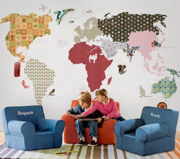 ▼ 彩色的地图非常适合用在儿童房,不但色彩鲜艳有趣,还能寓教于乐。
