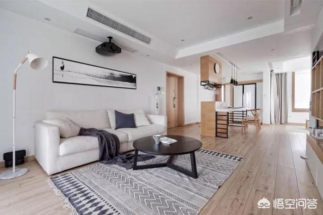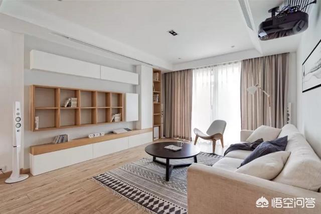 关于婚房的很多想法:小夫妻喜欢看电影和看书,但是很明确的表示不能满墙都是书架,那样更像是一个老头子的家。设计师看了一圈,房型较周正,基本都是承重墙,可以敲的墙也没几面,能砸的都砸掉。