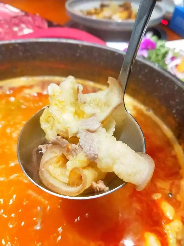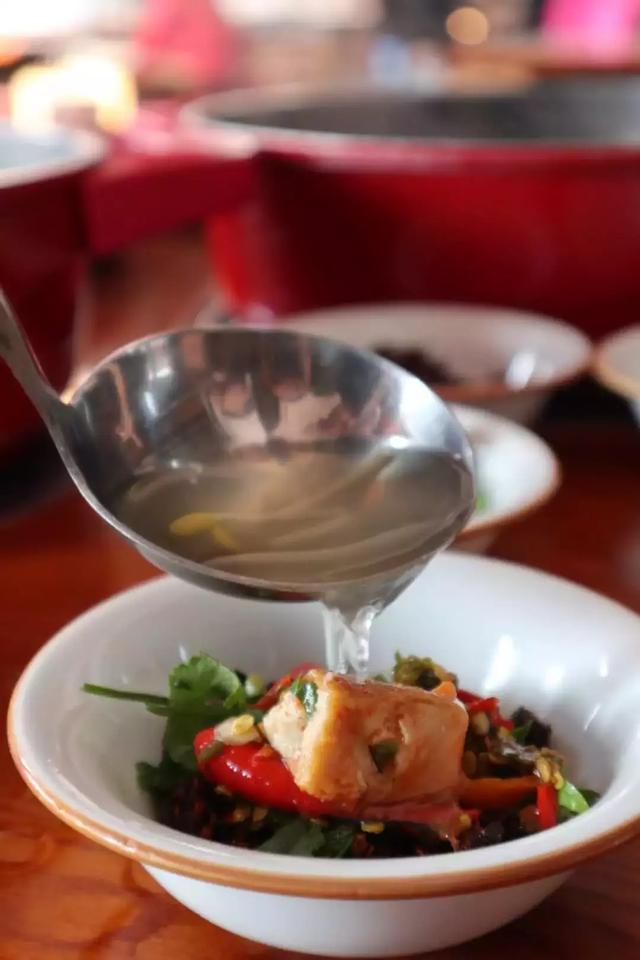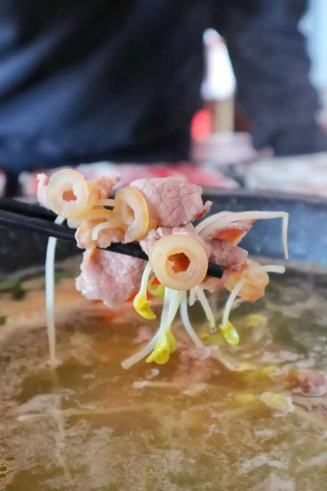 连下牛肉的顺序都有讲究:要先下最嫩的带皮牛肉,约10分钟以后再下嫩肉。这样可以最大限度吃到牛肉本身最鲜美的味道。