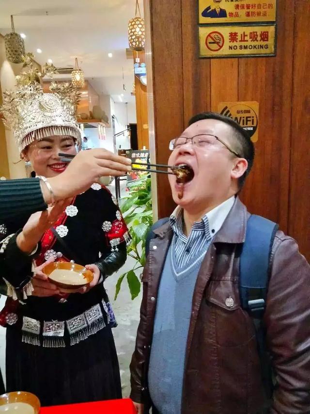 你肯定会一脸懵,吃酸汤牛肉还有什么讲究不成?是的!在吃之前要先舀上一碗酸汤,苗家有:先喝酸汤,风调雨顺的说法。