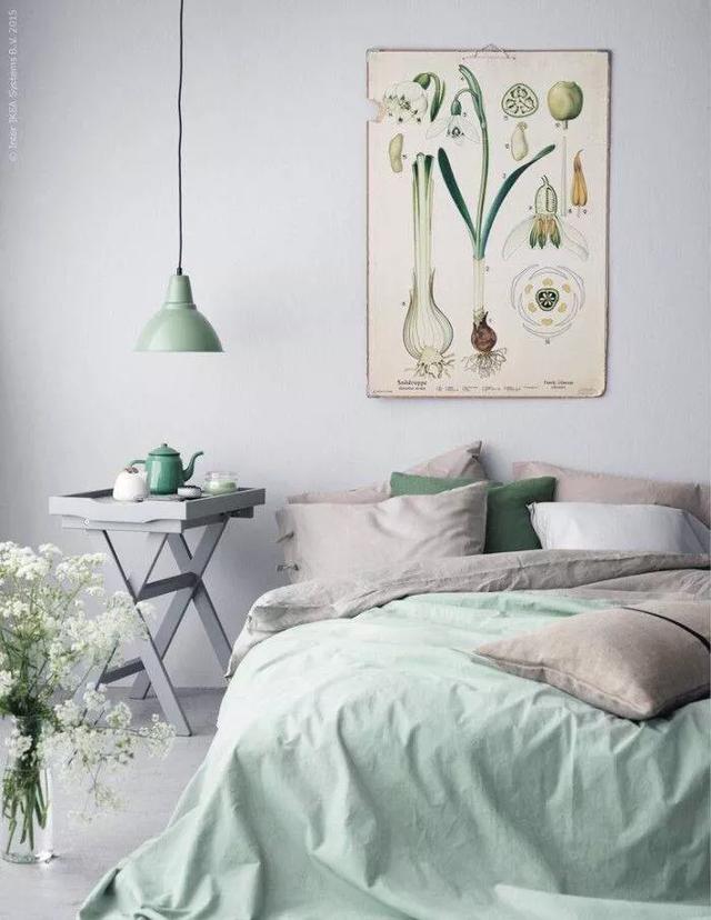 方式三:最简单,把床品换成薄荷绿。