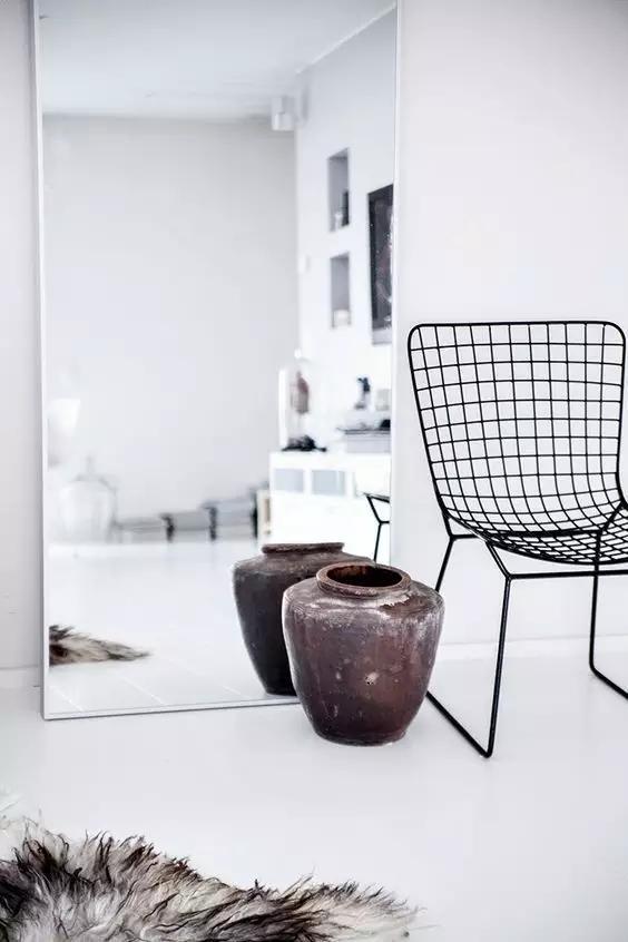 在视觉上,镜面有放大空间的效果,让小空间看起来更加宽敞。将镜面摆放在适当的位置还可以将室外的自然光反射至空间内,会让空间明亮许多。摆放一面大镜子,是放大空间最简单的方法,找一面全身镜并将其靠在墙上,不需要在墙上穿孔,只要能安稳地靠着墙即可!