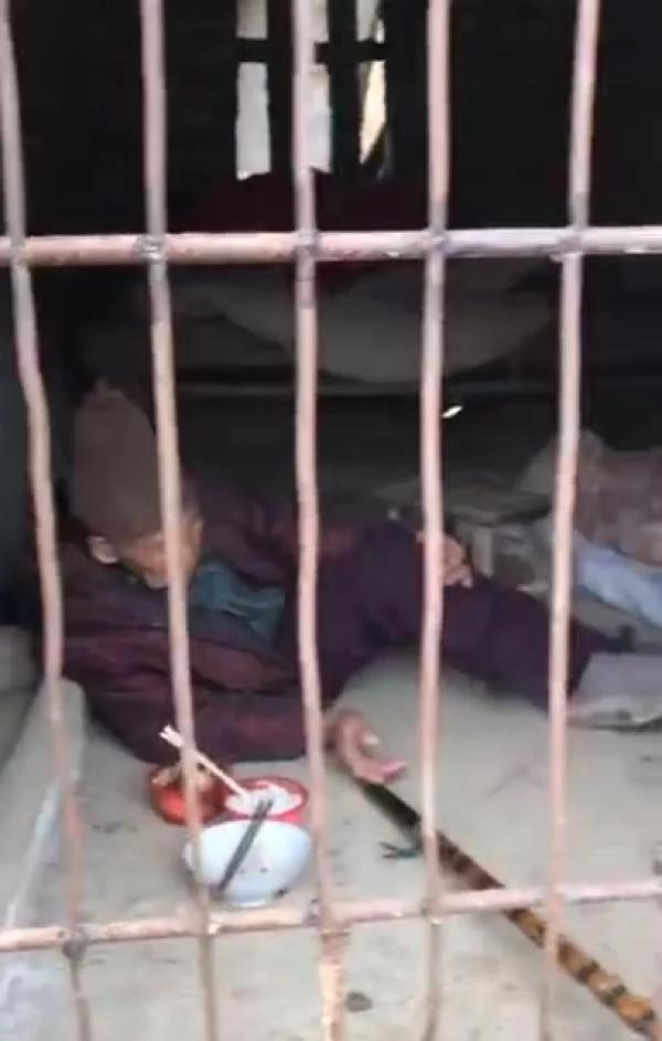 视频拍摄者告诉澎湃新闻,老太名叫龚金秀,沙塘乡人,今年93岁,耳背且腿脚很不方便,神智不太清醒。老太有三儿一女,由三个儿子按月轮流赡养,这段时间轮到小儿子,其小儿子将其关在一间条件极差的屋子内。这间屋子本是个猪圈,条件特别差,铁栏门和纸窗户根本不足以抵御严寒,老人每天的饭菜也就是从铁栏的缝隙中递进去,这样生活条件下的老太着实让人心疼。