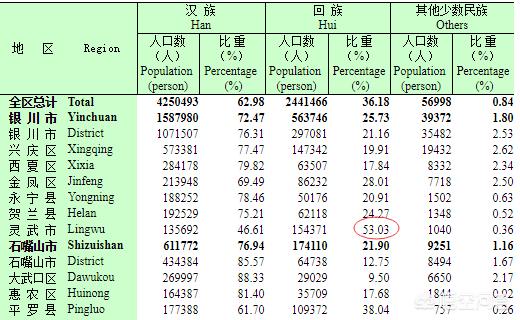 在县级行政区域下,回族人口最多的是同心县,高达86.17%的回民人口,泾源县高达78.68%的回民人口,海原县高达71.17的回民人口。