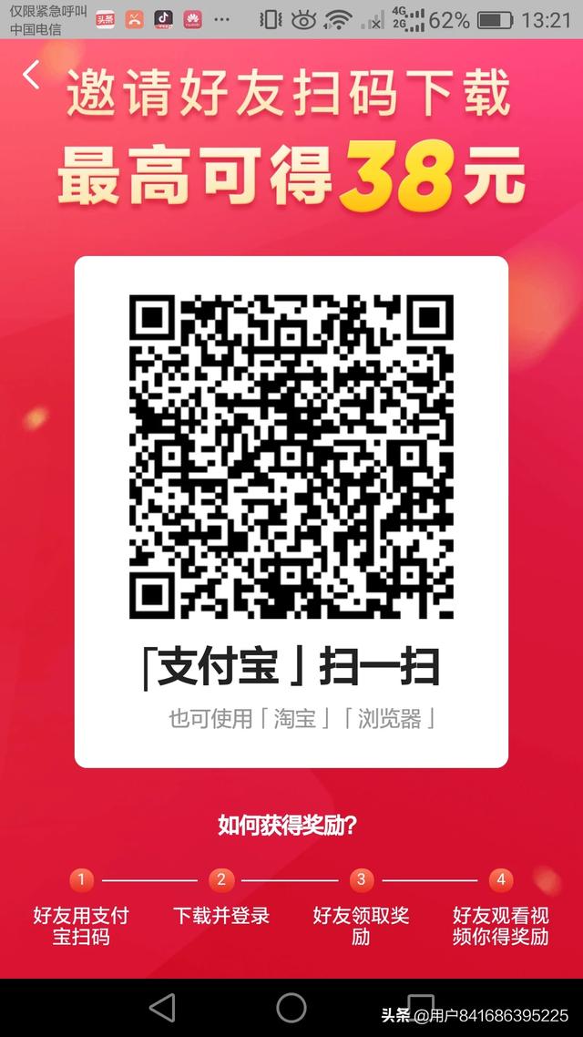 下载抖音极速版,抖音和抖音极速版完全是一样模一样的哈,不影响你观看的。只不过抖音极速版看视频有收益。由于刚出来,链接比较少,可以直接扫下方二维码下载,下载完登录进来,点开下方中间的去赚钱,填写邀请码88243458,你将得到一个新手红包,最多可得38元,可提现的。每天可以做任务得金币,然后你开始刷视频,一天刷个几万金币没一点问题,一万金币兑换一元钱。如果你想赚的更多,可以拉一下身边人一起来刷抖音极速版,你拉来的人看视频,你可以得到双倍金币进贡的哦,这个就来的快的很了,做的好的,一天200至300元没毛病