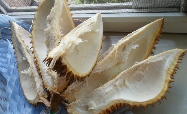 2、榴莲皮放到太阳下面暴晒,基本上一个月便可以发酵成功,等到给植物换盆的时候直接使用即可,榴莲皮里面含有丰富的微量元素,可以有效的促进植物生长,可以让植物越长越旺。