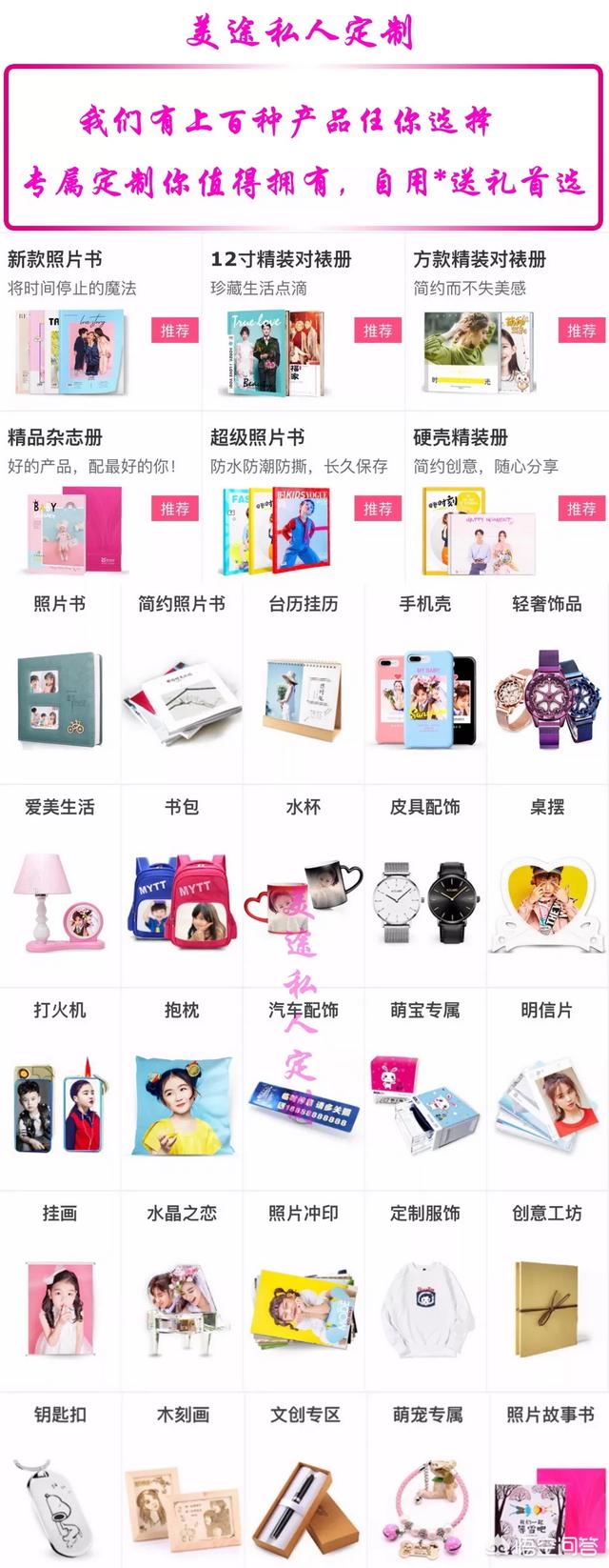 (目前可定制产品已达到上百种:照片书,抱枕,手机壳,书包,摆台,衣服,杯子,挂饰,围巾等)!