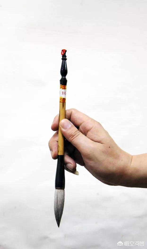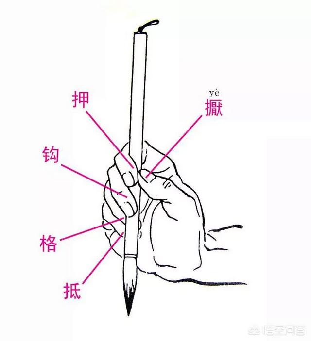 人手的五个指头怎样分布控制笔干,一般大拇指和食指中指捏住笔干,无名指,小指紧贴笔干向外施力,使笔干保持平衡,形成一个相对空的掌心,这个掌心能放一个鸡蛋,这就是执笔的形状,执笔的深浅,表示执笔距离笔锋的远近,一般写的字大些,就握相对顶部,反之就握在底部些。