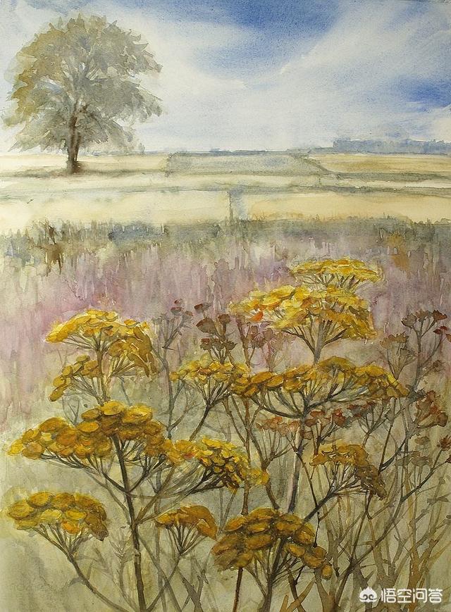 就像这幅画中,作者把前面的油菜花突出处理,后面的用灰色调几笔带过。