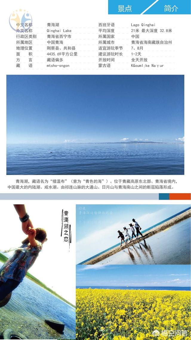 青海进入以后,那么最著名的景区当属青海湖景区和茶卡盐湖,进去了,那么这两个进去最好的季节就是在每年的七月份到八月份左右来游玩,因为这里气候宜人,湖边的平均温度只有15°可以说是避暑的胜地。再加上油菜花已经开了,所以说蓝蓝的湖水边倒映着黄色的油菜花,是非常美丽的。