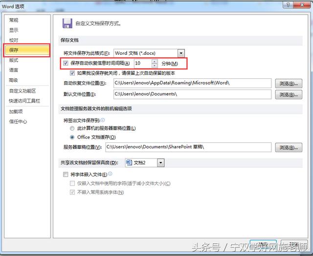 一、首先打开【文件】- 【选项】-【保存】-【保存自动恢复信息时间间隔】-【自己定义时间即可】。